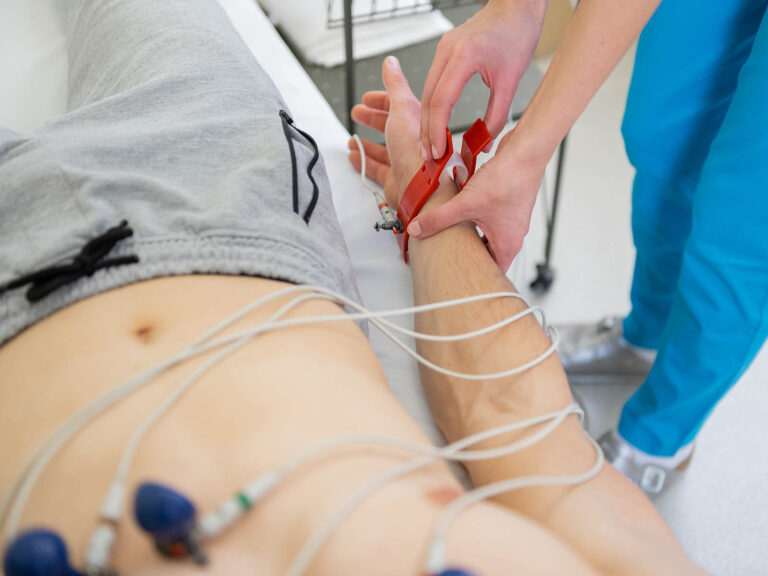 EKG spoczynkowe to podstawowe, nieinwazyjne badanie oceniające czynność elektryczną serca. Polega na zarejestrowaniu pracy serca w spoczynku za pomocą elektrod umieszczonych na klatce piersiowej, rękach i nogach.